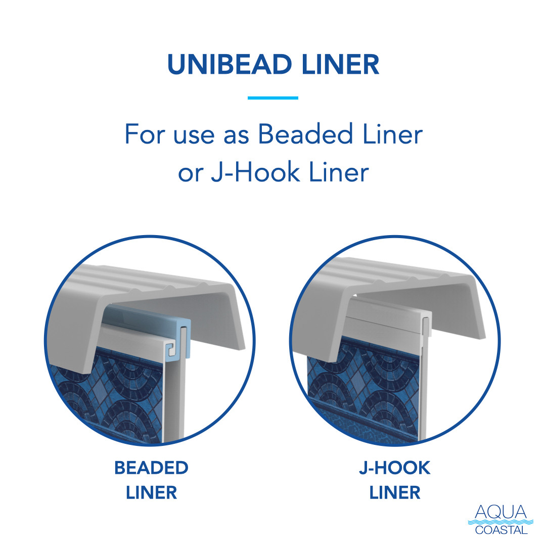 Unibead liners are designed to match the exact wall height of your pool. Use them as a J-hook / J-bead liner or use with a bead receiver as standard bead. Easy to install and fool-proof for anyone who is unsure of what bead they have.