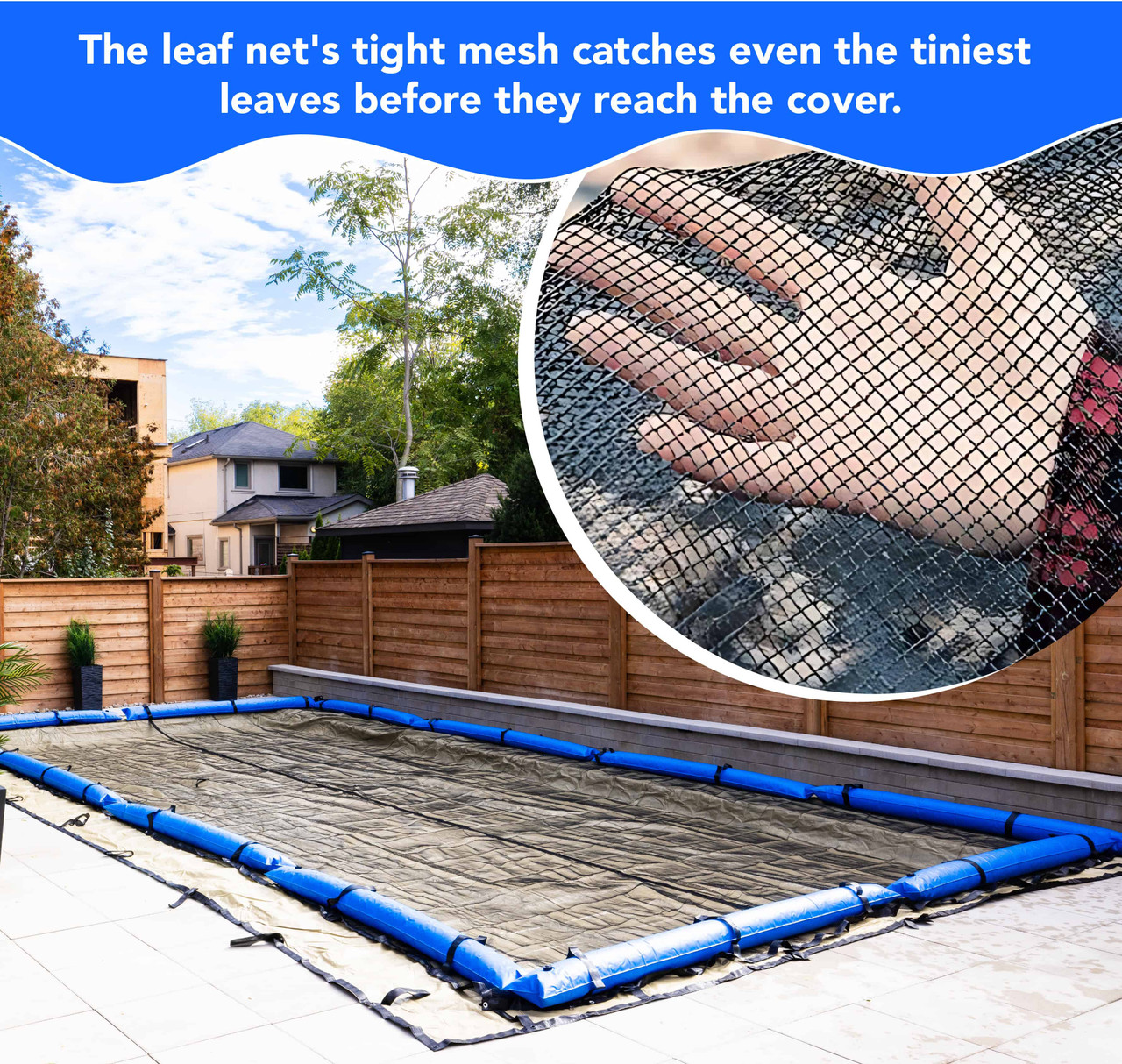 Leaf Nets help eliminate the messy spring clean up. Simply put the leaf net on your pool in the fall while the leaves are falling off the surrounding trees. Once all the trees are bare you can remove the cover along with the leaves. No decomposed leaves = No mess in the Spring !