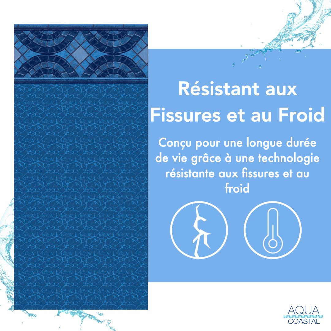 Ajustement parfait pour piscines ovales : Conçu spécialement pour les piscines hors terre ovales, le revêtement Unibead Cayman offre un ajustement serré et sécuritaire qui demeure bien en place toute la saison.