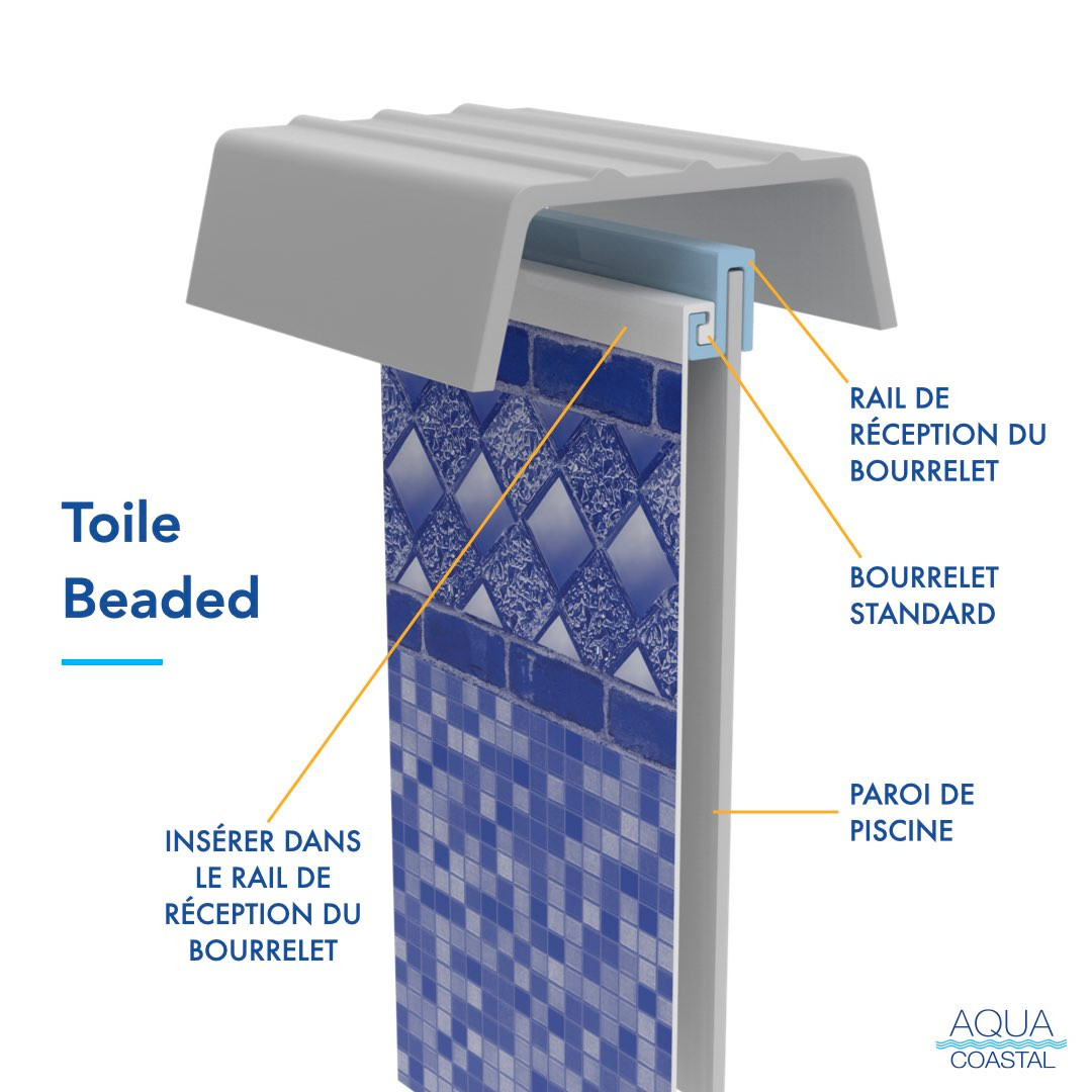 Les toiles Unibead sont conçues pour correspondre exactement à la hauteur de paroi de votre piscine. Utilisez-les comme toile J-hook / J-bead, ou avec un récepteur de bordure comme toile à bordure standard!