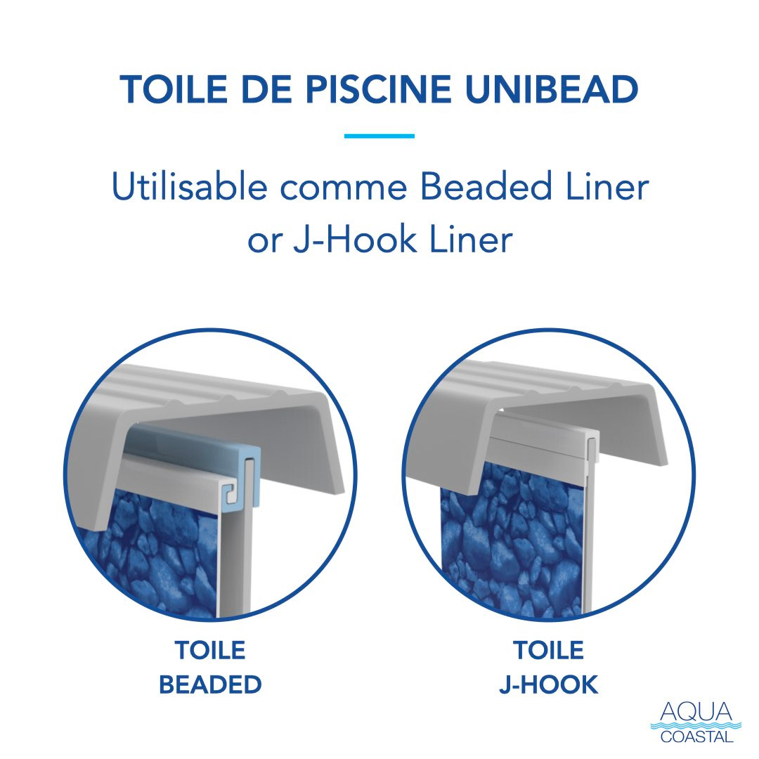 Unibead liners are designed to match the exact wall height of your pool. Use them as a J-hook / J-bead liner or use with a bead receiver as standard bead. Easy to install and fool-proof for anyone who is unsure of what bead they have.