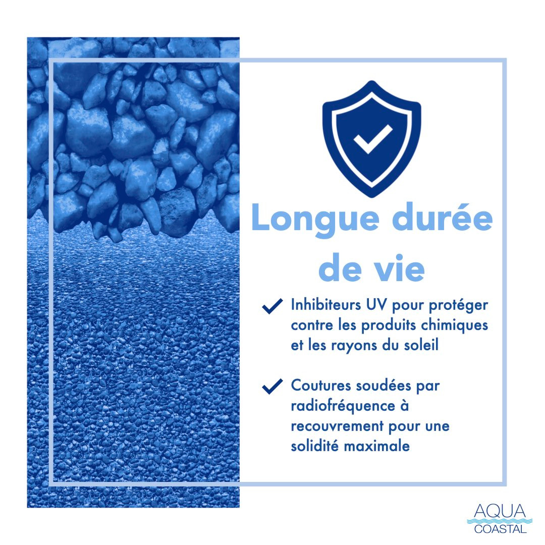 Our Cayman print liners are made from 100% virgin vinyl and are heavy duty 25 GA – you can be sure you will get a long, reliable life out of your liner. Engineered with top of the line technology to be crack and cold resistant to ensure longevity of your line. The edges are sealed with the most advanced machinery and bonded with extreme pressure heat to ensure an enduring bond that will last you. Computerized cutting tables are used to eliminate human error. Tough & long lasting due to welded seams. This liner will work on all same-depth, above ground pools that are 52” in wall length. Protected against chemicals and UV rays so your liner will last the hot summers and long, Canadian winters.