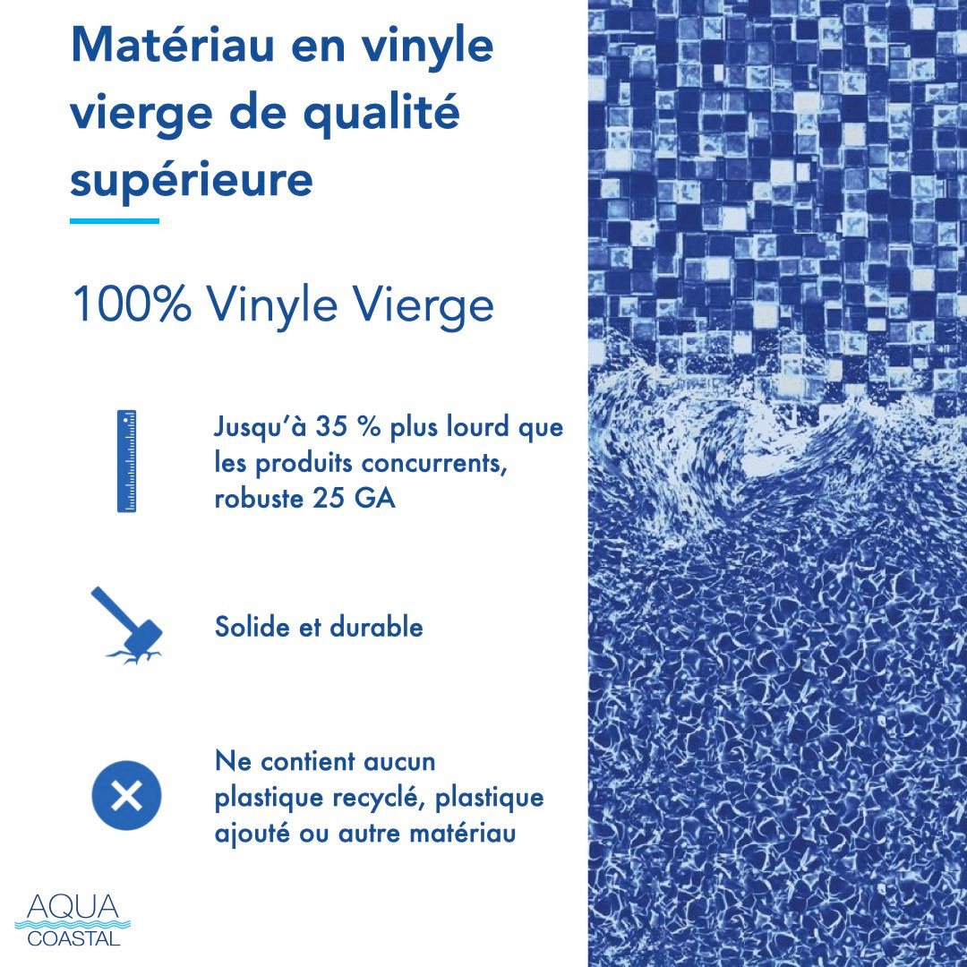 These 18' x 33' Oval Bali liners are engineered with top-of-the-line technology to be crack-resistant and cold-resistant, making them ideal for hot summers and long Canadian winters. They are also protected against UV exposure and common pool chemicals, helping extend the life of your liner when proper water chemistry is maintained.